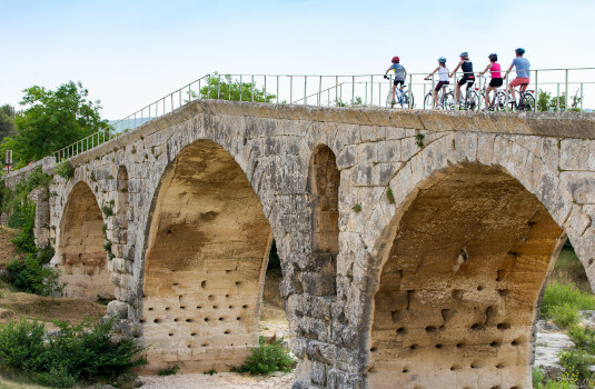 As you approach the Pont Julien, cycle slowly over the bridge to reflect on the 2,000 years of history beneath you. The stone bridge spans the Calavon river with its 3 sturdy and slender arches.