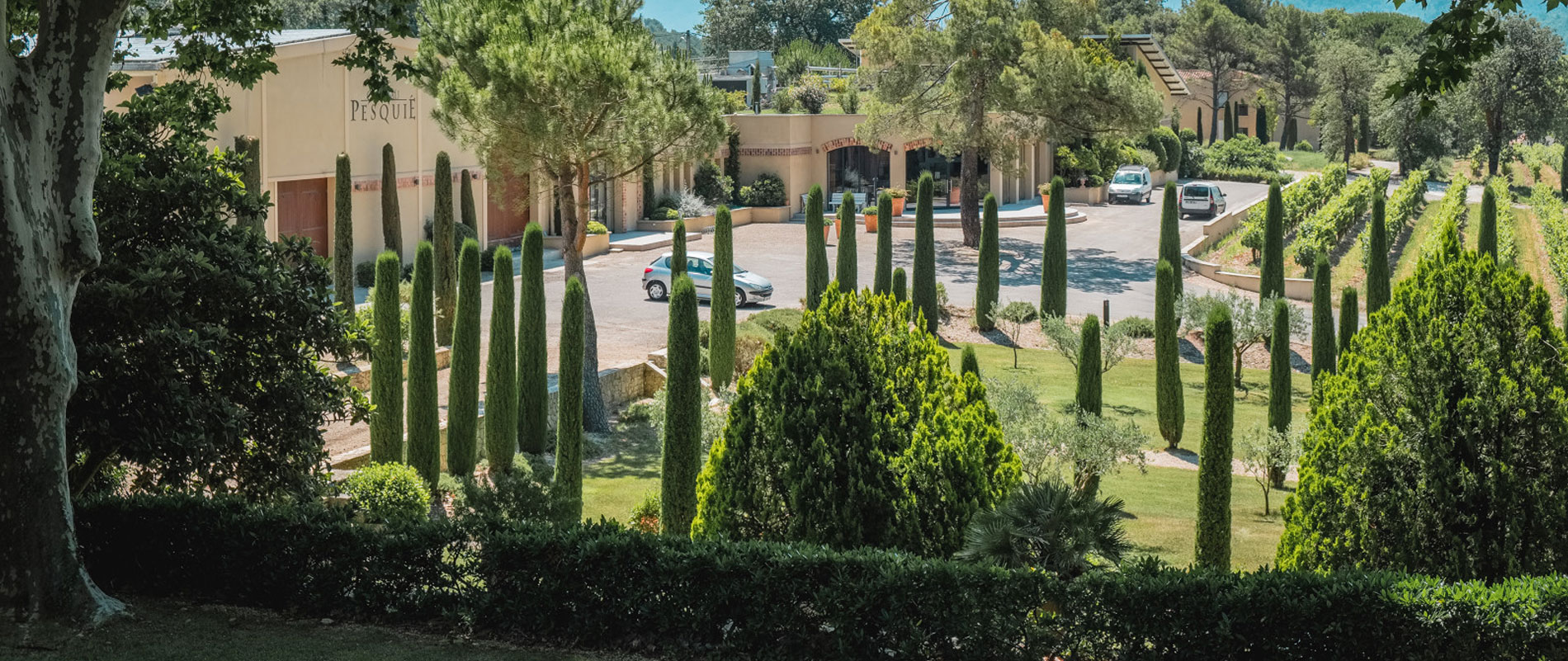 As soon as you step foot between the two long rows of plane trees, you’ll know that this day will be a lesson in the Provençal art of living. There’s cicadas, sunshine, breeze in the trees and dappled sunlight beneath the shade of foliage – and in the distance, at the end of the path, the ochre facade of Château Pesquié with the Mont Ventoux in the background.