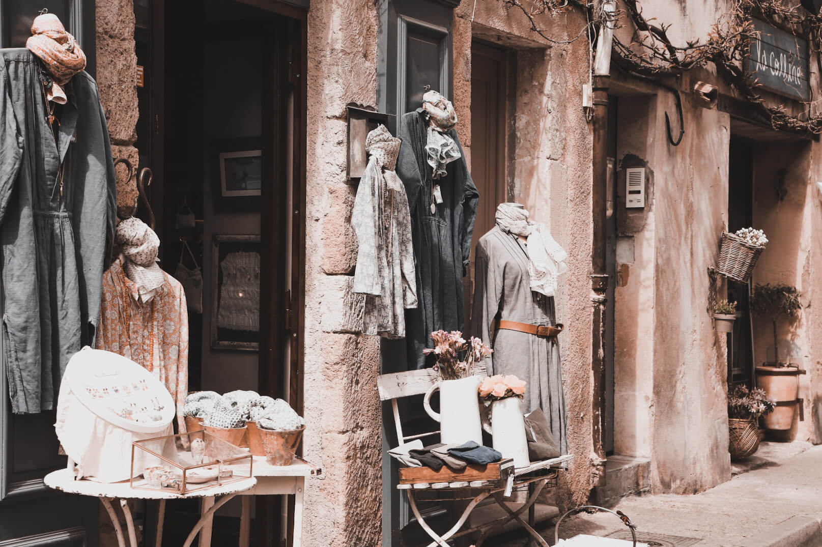With its porches, light facades with blue shutters and covered with climbing plants and its eight fountains, the village has captured the heart of many an artist, some of whom have gone on to open a gallery there.
