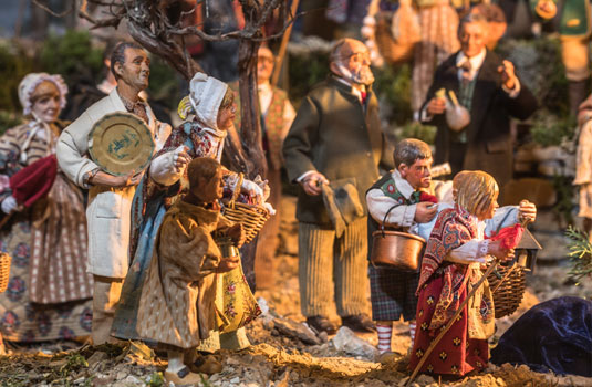 The nativity scene and its figurines (small Provençal saints) are a strong tradition in Provence. Each year, characters of all sizes enter the stage to tell us about the past lives of our villages, where all trades appear in detail. The miller and his donkey cross paths with the knife-grinder, the drummer, the shepherd and his flock meet the water-carrier, the rag-and-bone man or the chimney sweep etc., in a typical Provençal setting where there are houses and village squares, churches, narrow alleys and fountains surrounded by scrubland, olive groves and lavender.