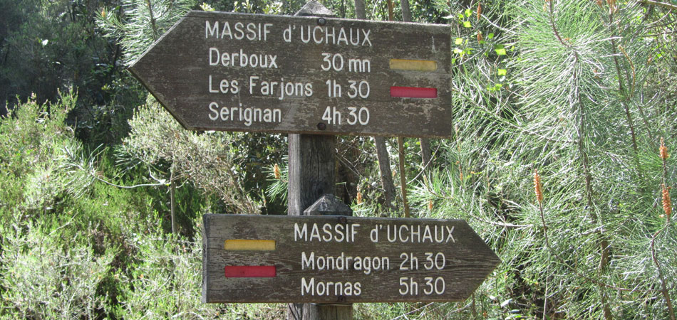 In Uchaux, between Mornas and Ste-Cécile-les-Vignes, we’ll discover Castellas Castle with an easy little hike through the woods (7.3 km circuit).