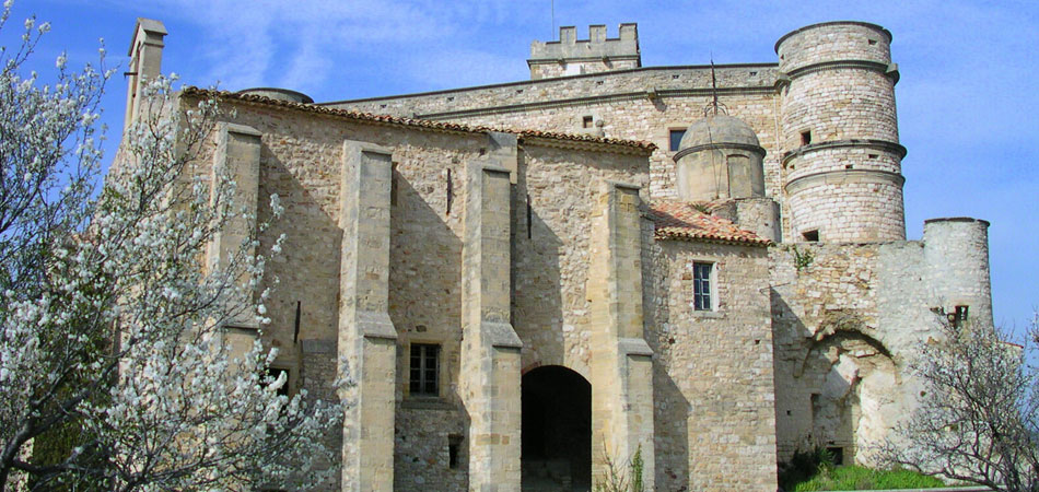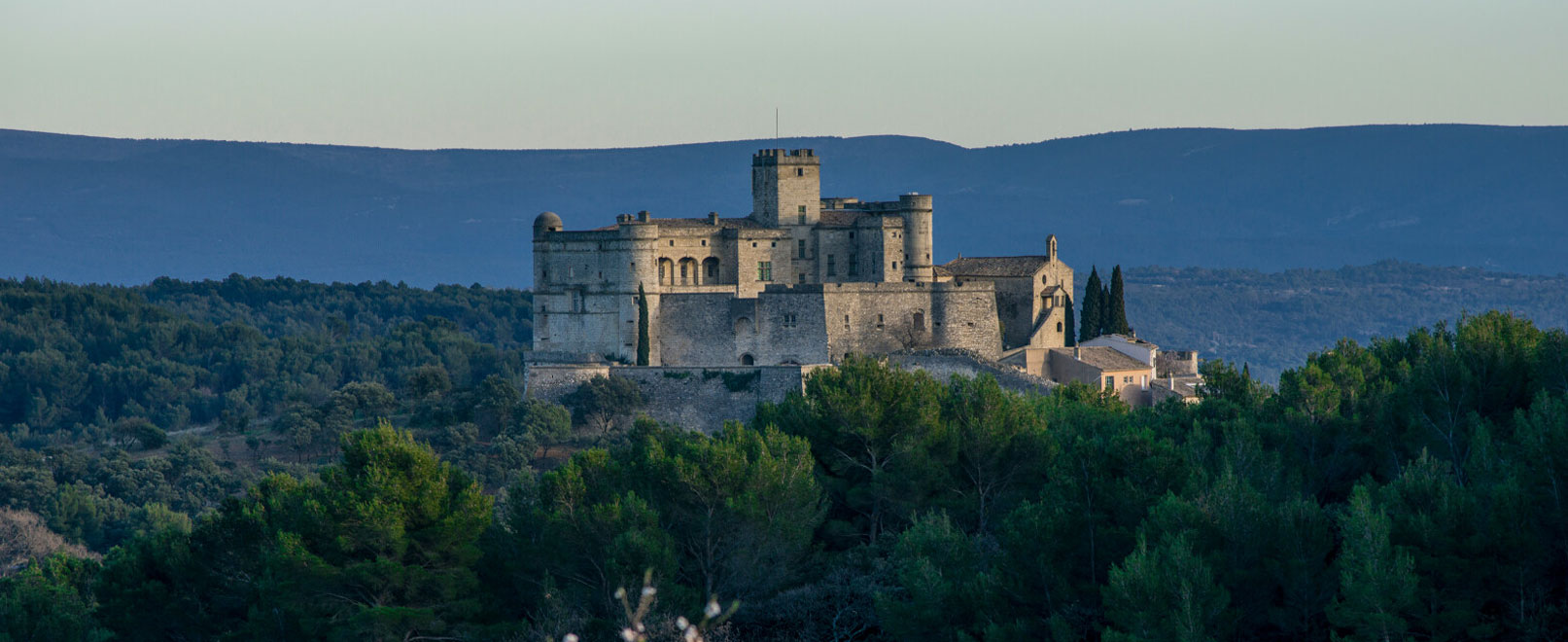 Let’s admire the view of the Dentelles de Montmirail and Mont Ventoux, the vines and orchards, and see the strong silhouette of 12th-century fort appear, flanked by its dungeon and defensive walls: Le Barroux Castle.