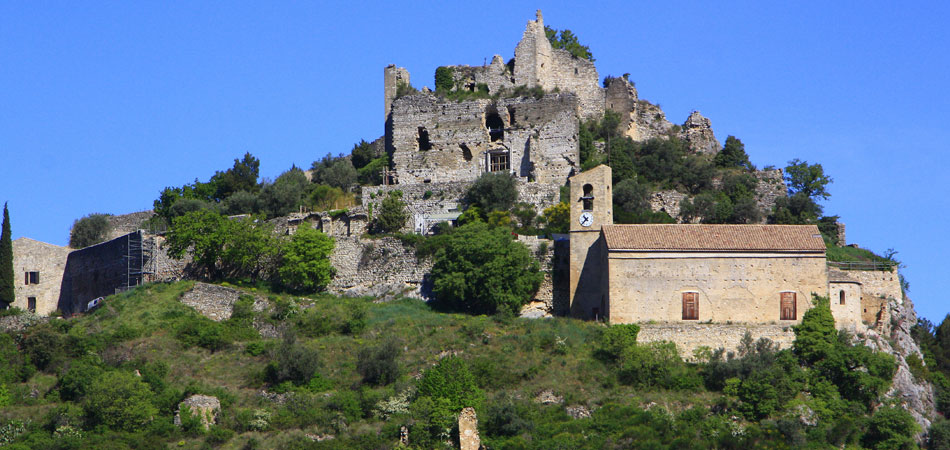 At the border between Vaucluse and the Drome, after Crestet, a feudal castle still watches over the little village of Entrechaux.