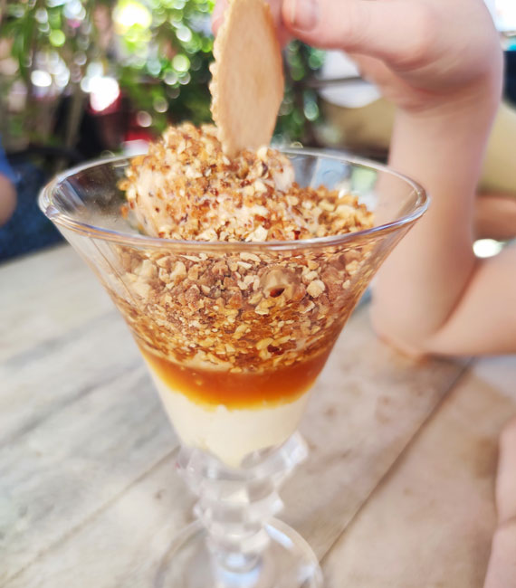 At Nougats Silvain, in Saint-Didier, artisanal ice creams are served alongside nougats and other sweets for which the establishment is known. We sit down on the pretty little terrace for a bowl of “Vacherin”, “Paysan nougatier”, “Envie d’été”, “Tête-à-tête” ice cream…