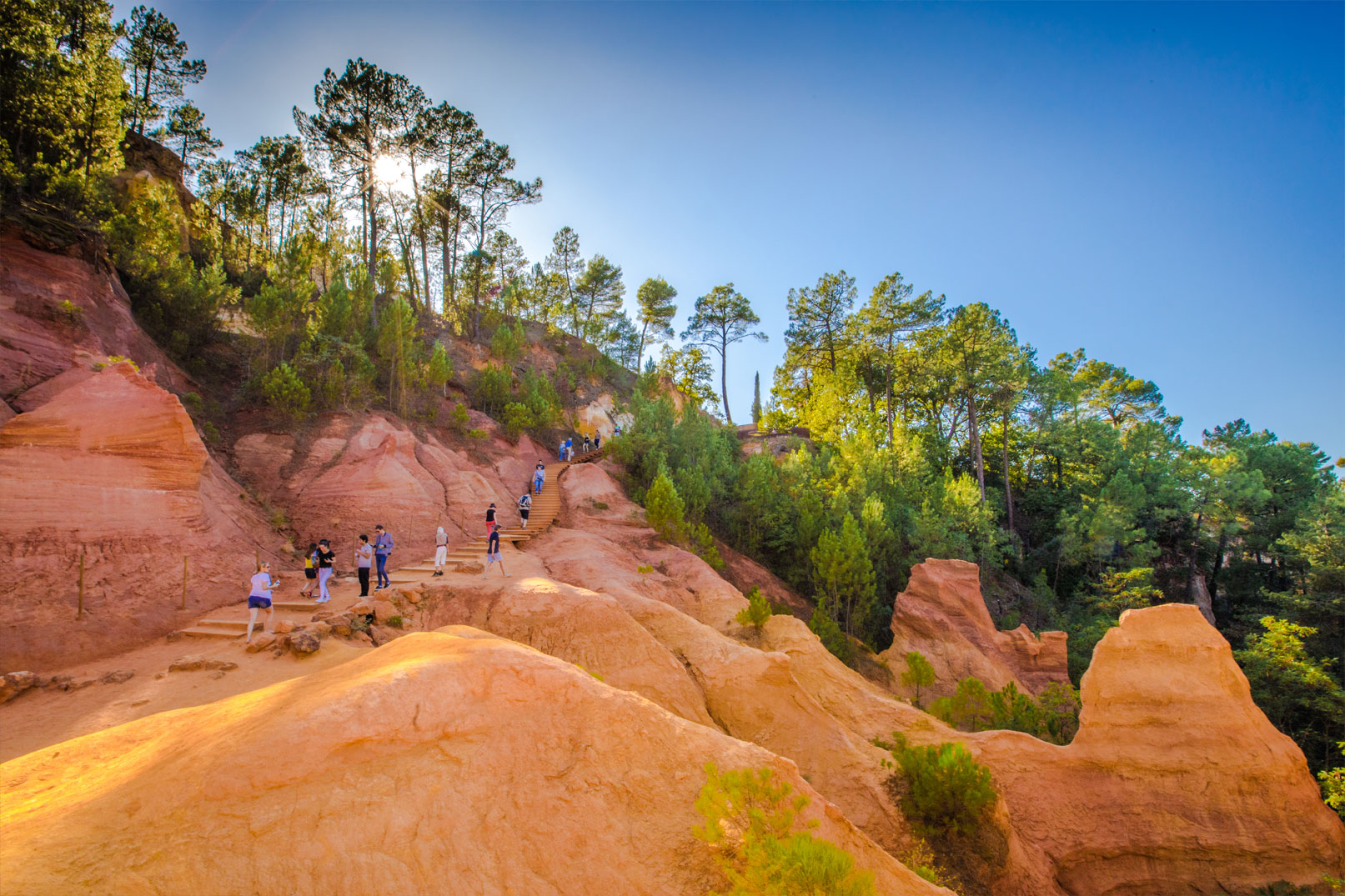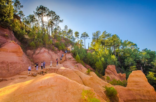 From Rustrel’s Provençal Colorado to the Mars-like red ground of the ochre footpaths in Roussillon, let your imagination run wild!